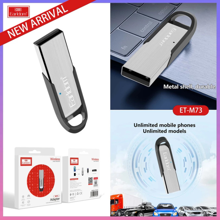 دانگل بلوتوث مدل ET-M73 ارلدام یک کالای بسیار پرطرفدار و کاربردی است. این کالا مانند یک فلش است که بدون نیاز به نصب هیچگونه نرم افزاری می توان آن را راه اندازی کرد و مورد استفاده قرار داد. ضمن اینکه می توان این دانگل را به ضبط ماشین متصل کرد و از این طریق موسیقی مورد نظر را پخش کرد ، همچنین شما قادر هستید که این گیرنده را به اسپیکرهایی که درگاه USB دارند وصل کنید و آن ها را به یک اسپیکر بلوتوثی تبدیل کنید. از دیگر قابلیت های این گیرنده دارا بودن میکروفون برای مکالمه می باشد. این گیرنده همراه با یک درپوش برای جلوگیری از ورود گرد و غبار به داخل گیرنده محافظت میشود.