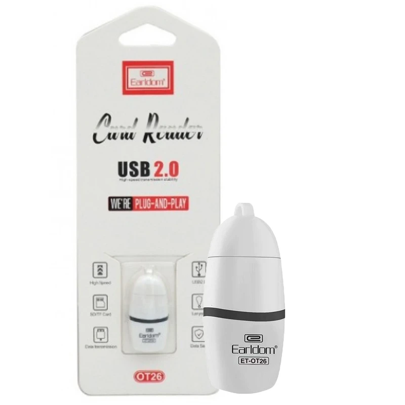 رم ریدر ارلدام مدل OT26 به مادگی USB برند (earldom) مبدلی است که به وسیله ی آن می توانید کارت حافظه را به مادگی USB تبدیل کنید. توسط این مبدل می توانید اطلاعات را با سرعت بالا انتقال دهید. این تبدیل بیشتر برای ضبط های خودرو مورد استفاده قرار می گیرد.انتهای رم ریدر دارای جایگاه برای بند آویز نیز میباشد. که برای حمل راحت تر و همچنین جلوگیری از گم شدن رم ریدر تعبیه شده است. جنس بدنه محصول هم از پلاستیک است و استحکام مناسبی در برابر ضربه و شکستگی دارد.