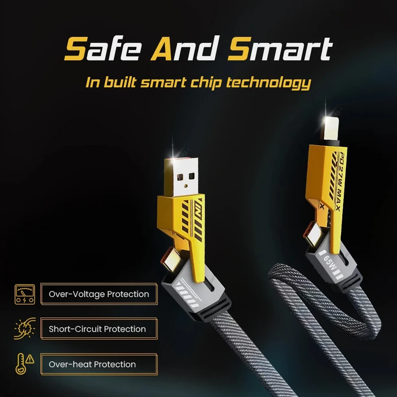کابل تبدیل 4 در 1 تایپ سی/لایتنینگ/USB مدل 2to2 کابلی پرکابرد بوده که در چندین حالت مختلف قابل استفاده است. با به همراه داشتن این کابل، میتوانید انواع مختلفی از دستگاههای الکترونیکی مانند تبلت، گوشی موبایل، ساعت هوشمند، لپتاپ و… را به آسانی شارژ کنید و به خوبی جایگزین سیمهای اضافی میشود. همچنین امکان انتقال دیتا بدون هیچگونه وقفه و یا قطع شدگی را با سرعت 480 مگابیت بر ثانیه دارد. روکش این سیم از الیاف بافته شدهی نایلون ساخته شده و دچار پارگی یا شکستگی نمیشود طول آن نیز 100 سانتیمتر بوده که برای استفادههای روزمره مناسب است.
