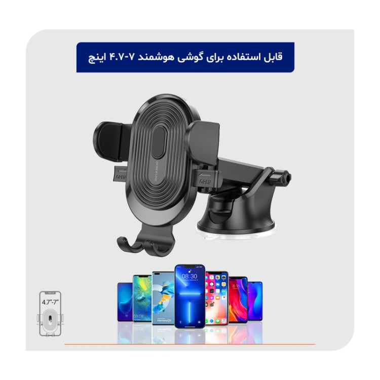مناسب برای تلفن همراه با سایز ۴.۷ تا ۷ اینچ محدوده بازشدن نگهدارنده: ۵۳ تا۹۰ میلی متر قابلیت چرخش ۳۶۰ درجه برای تنظیم تلفن همراه به شکل دلخواه دارای پلاستیک مقاوم در برابر نور خورشید و آفتاب سوختگی دارای پایهی مکشی با قابلیت جدا شدن آسان دارای قفل اتوماتیک و باز شدن قفل توسط فشردن یک دکمه در پشت هولدر دارای فناوری Anti-Falling جهت مقاومت در برابر لیز خوردن و افتادن تلفن همراه تکنولوژی سطح: سطح با طراحی به شکل خورشید جهت محافظت در برابر لیز خوردن طول عمر طولانی محصول مناسب برای نصب و استفاده در قسمت کنسول مرکزی خودرو دارای گواهینامه QC PASS جهت تایید بررسی و آزمونهای کیفیت سنجی هولدر دارای تمام استانداردهای بین المللی